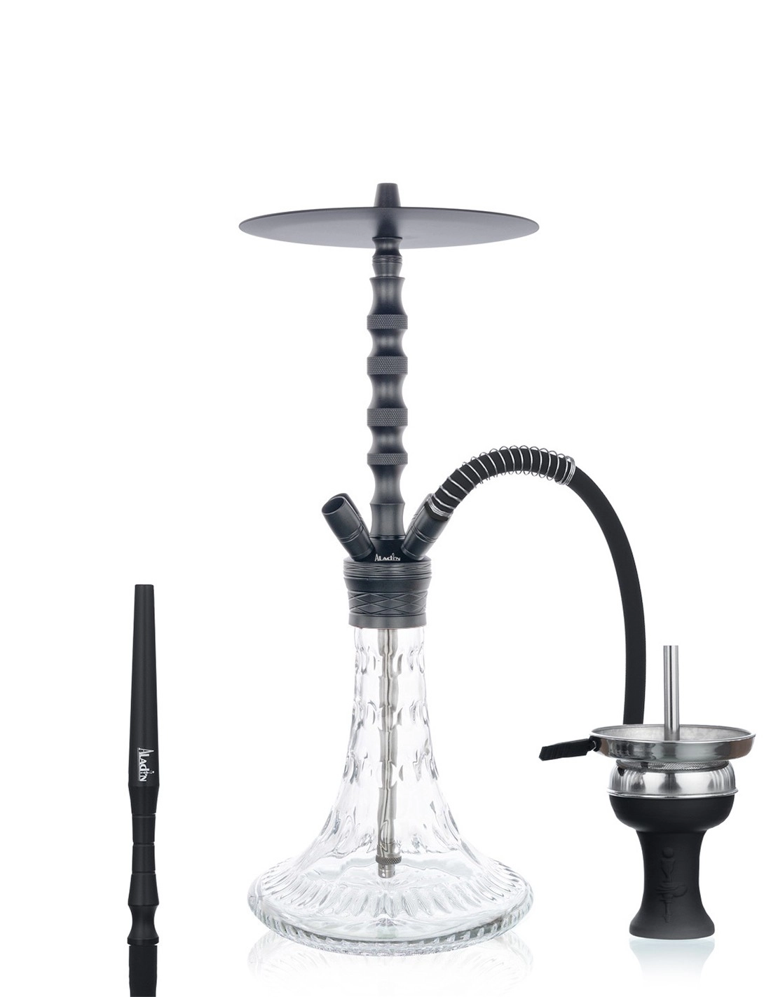 Chicha du fabricant Allemand Aladin Shisha d'une hauteur de 58cm et munie d'un système de fermeture click lock. Cette chicha est livrée avec tous les accessoires dont vous aurez besoin pour fumer votre chicha.