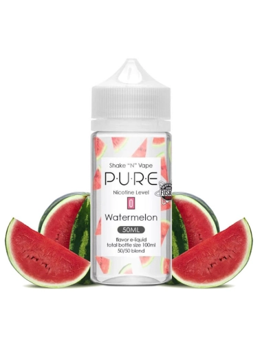 E liquide Watermelon Pure. Cette saveur sucrée et juteuse de pastèque fraîche vous emportera dans les contrées où l'été dure 365 jours par an. Le eliquide Watermelon 50 ml est fabriqué aux USA
