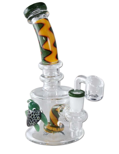 Petit bong pour dabbing de marque Black Leaf d'un hauteur de 18.5cm doté d'un percolateur pour adoucir la fumée de vos concentrés. Ce bong est décoré avec de belles couleurs et une petite tortue sur le côté.