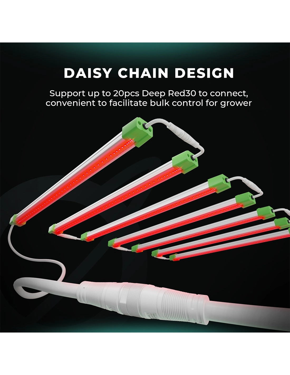 Fonction de guirlande pratique : le R30 rouge profond prend en charge la connexion simultanée de jusqu'à 22 bandes lumineuses de culture tout en utilisant un seul cordon d'alimentation, pratique à contrôler pour les producteurs d'intérieur.