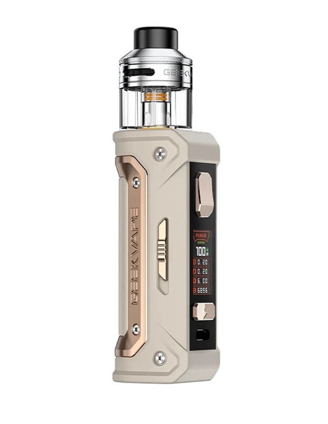 Le Pod Aegis Eteno E100 de Geekvape fait un carton plein. Derrière ce corps solide se cache une ecigarette équipée d'un chipset réactif. La puce électronique As 3.0 peut développer 100 watts et offrir divers modes comme Smart, Boost et contrôle température. Pour assurer une navigation aisée entre les menus, les vapoteurs pourront compter sur l'écran placé sur la face avant du E100 !
