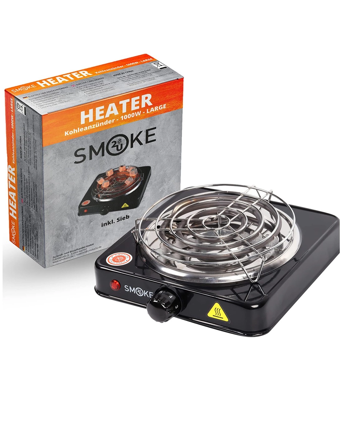 Allume charbon pour chicha de la marque Allemande Smoke2U d'une puissance de 1000W. Grâce à cet appareil, vous pourrez rapidement allumer vos charbons à chicha et avoir des charbons qui sont uniformément rouge et prêt à chauffer votre tabac.