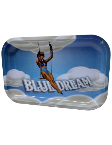 Très beau plateau à mix en métal avec une pin up des années 50 sur une balançoire au milieu des nuages avec noté Bluedreams en dessous. Ce plateau de 29 x 19cm sera parfait pour éviter de mettre de la mix partout pendant que vous roulez vos joints.
