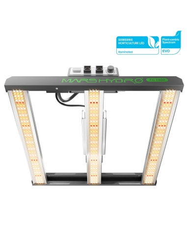 LED horticole du fabricant Mars Hydro petite et puissante pour la croissance et la floraison idéalement faite pour un espace de culture d'un maximum de 70 x 70cm. Grâce à cet éclairage polyvalent et uniforme, vous aurez une solution économique avec 2.85 µmol/J avec un rendement maximal de 3.5gr/W.