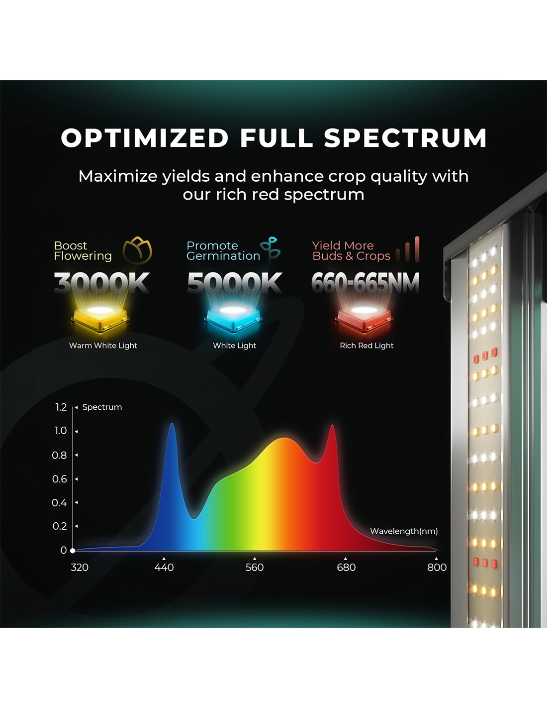 La série FC EVO de Mars Hydro équipée de diodes Samsung LM301H EVO les plus vendues, construites selon des conceptions et des recherches de projet de pointe, offre une efficacité de pointe de 2,85 umol/j et un PPFD moyen supérieur de 30 %, promettant un rendement important de 3,5 grammes par watt et augmentant la production de 50 % par rapport aux anciennes lampes