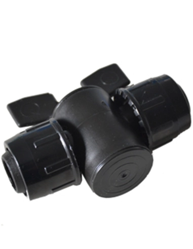 Cette vanne à poignée papillon est adaptée au réseau de goutte-à-goutte 25 mm.