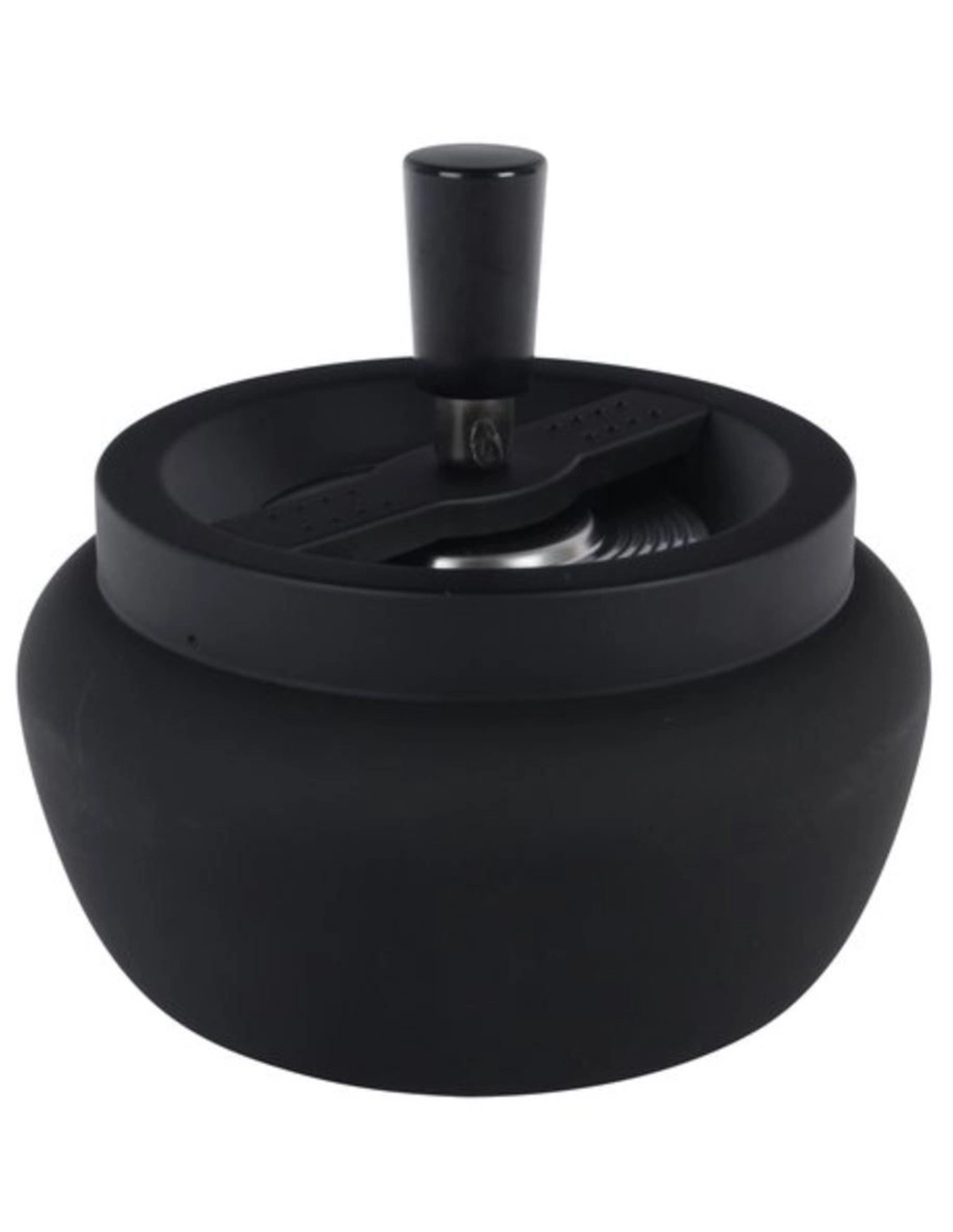 Cendrier en métal noir mate avec un poussoir qui vous permets de faire descendre les cendres et les mégots afin de limiter les odeurs résiduelles et éviter que les cendres finissent à côté du cendrier.