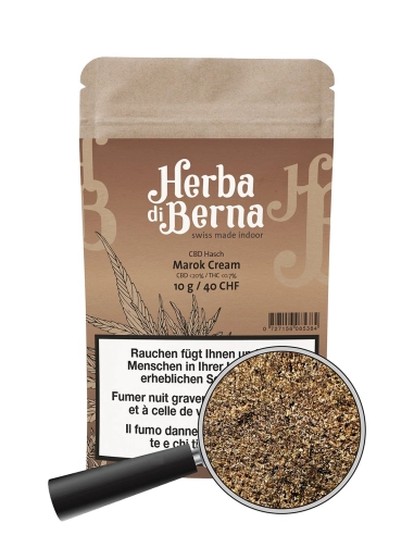 Le haschisch CBD légal Maroc Cream de Herba di Berna est aussi proche que possible de l’original marocain en termes de goût et de qualité. Le goût rappelle l’encens et un soupçon de bois de santal. Le haschisch Marok Cream n’est pas cultivé de manière biologique.