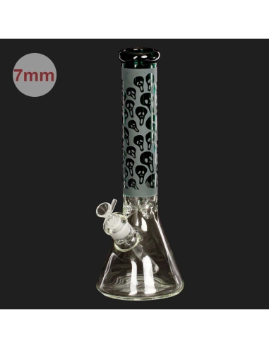 Bong tête de mort en verre borosilicate d'une épaisseur de 7mm de marque Amsterdam et sa hauteur est de 37cm avec un diamètre de 50mm. Vous pourrez également utiliser des glaçons pour refroidir la fumée de votre bong.