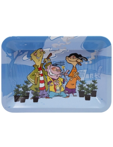 Plateau à mix en métal de couleur bleu avec des personnages totalement défoncés au cannabis. Ce plateau d'une dimension de 18 x 12cm sera parfait pour éviter de mettre de la mix partout lorsque vous roulez un joint.