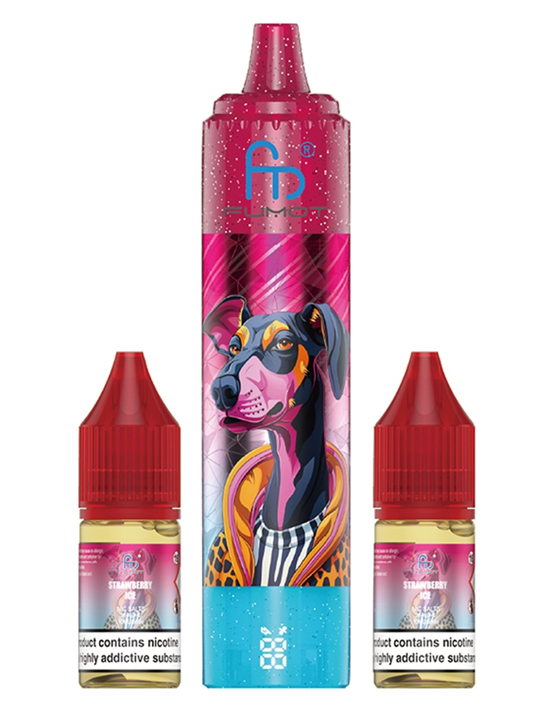 Le pack contient une puff Doberman rechargeable ainsi que 2 liquides de 10ml contenant une concentration de 2% de sel de nicotine.