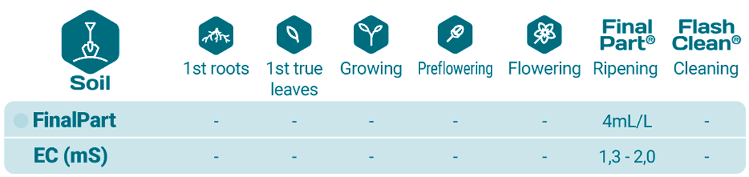 FinalPart® est un stimulant/engrais pour floraison tardive qui ne requiert l’ajout d’aucun activateur. Il améliore la floraison et la production de principes actifs et permet la remobilisation et la métabolisation des éléments accumulés.