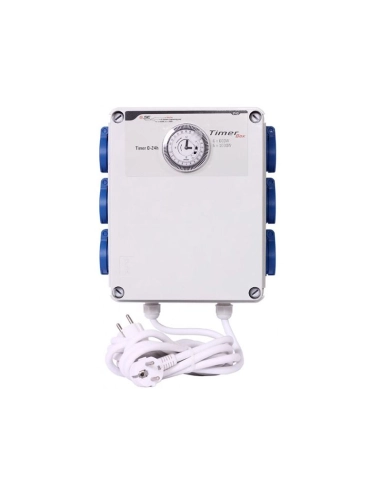 Les Timer Box 2 de GSE 6x600W intègre un timer de marque Grässling vous permettant de brancher jusqu'à 6 lampes de 600W. Le timer permet des intervalles de 30mn par 24h