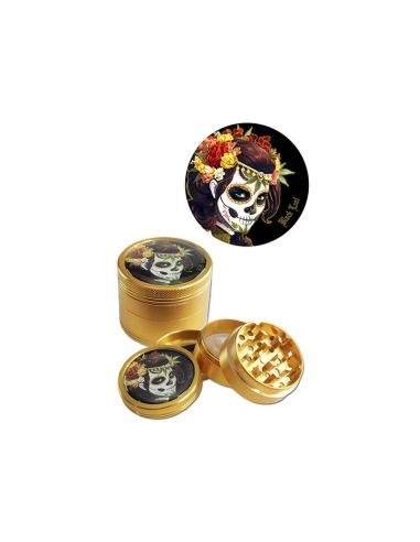Grinder en aluminium Mexican Skull 4 étages avec récuperateur de pollen. Diamètre: 50mm Hauteur: 41mm