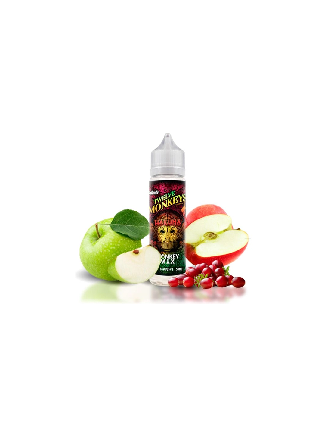 Hakuna 50 ml de Twelve Monkeys : une sélection de pommes Fuji et Granny Smith juteuses et délicieuses, en parfaite harmonie avec une finition de Cranberry. Rafraîchissant et équilibré.