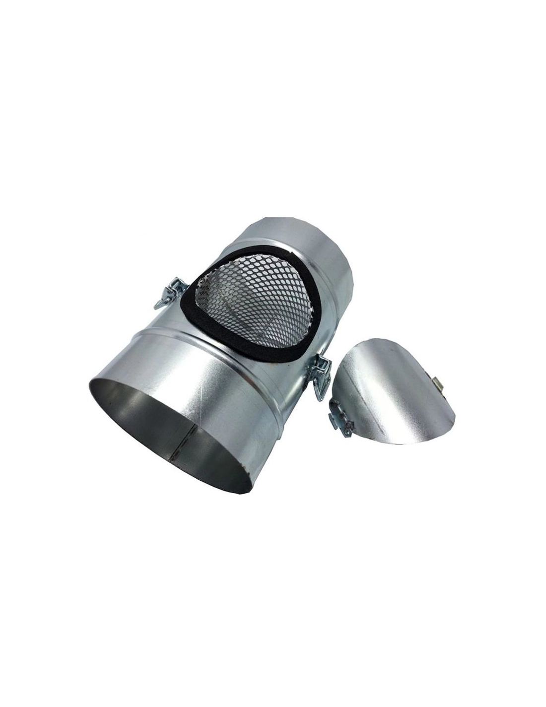 Raccord en métal pour la ventilation en diamètre 125mm pouvant fixer des gaines de même dimensions. L'avantage de ce raccord est qu'il peut acceuillir un bloc anti-odeurs de marque ONA ainsi, vous avez un raccord de ventilation qui diffuse un neutralisateur d'odeurs très utile dans certains espaces de culture.