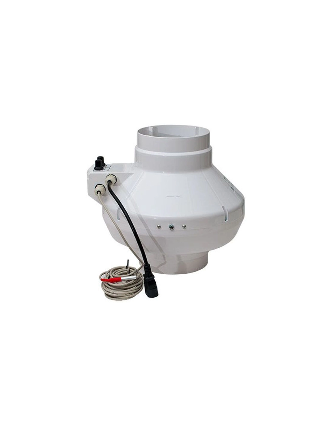 Ventilateur centrifuge EC en ligne de 250mm dans un boîtier en plastique avec une capacité d'air allant jusqu'à 1250 m³ / h avec variateur de vitesse et sonde de température de 4m.