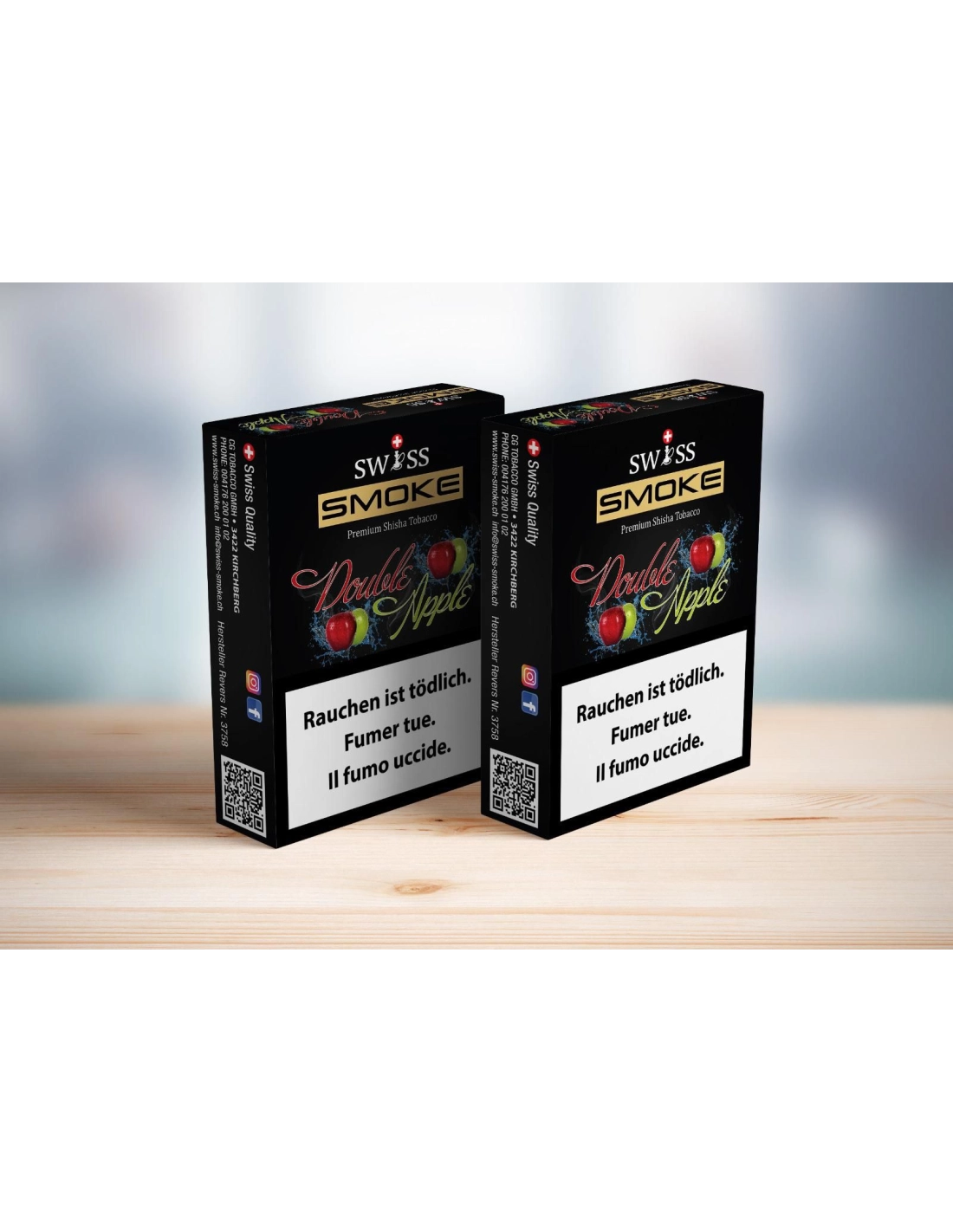 Tabac pour chicha de la marque Swiss Smoke à l'arôme classique de double pomme.