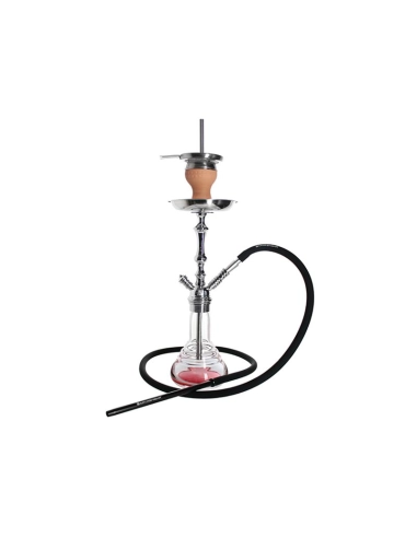 Chicha de marque Allemande Kaya avec un bon rapport qualité prix d'une hauteur de 48cm avec un corps en aluminium brillant et un vase transparent qui permet de voir le niveau d'eau.
