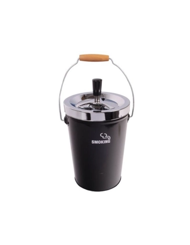 Cendrier en métal avec poussoir pour éviter de mettre des cendres partout et grâce à sa poignée, vous pourrez très facilement le déplacé.
