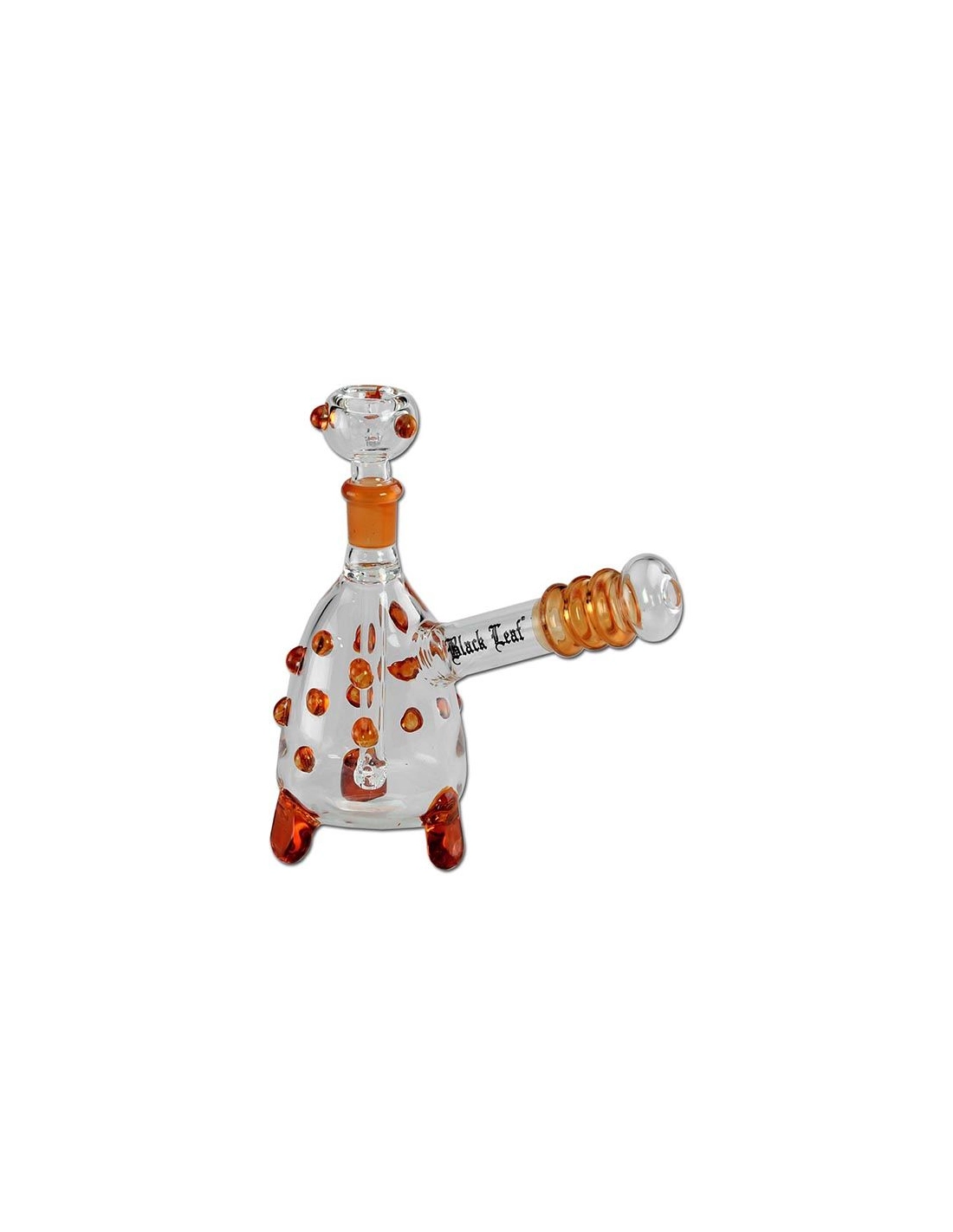 Petit bong en verre de marque Black Leaf d'une hauteur de 15cm et comportant trois pieds qui permettent une bonne stabilité du bong.