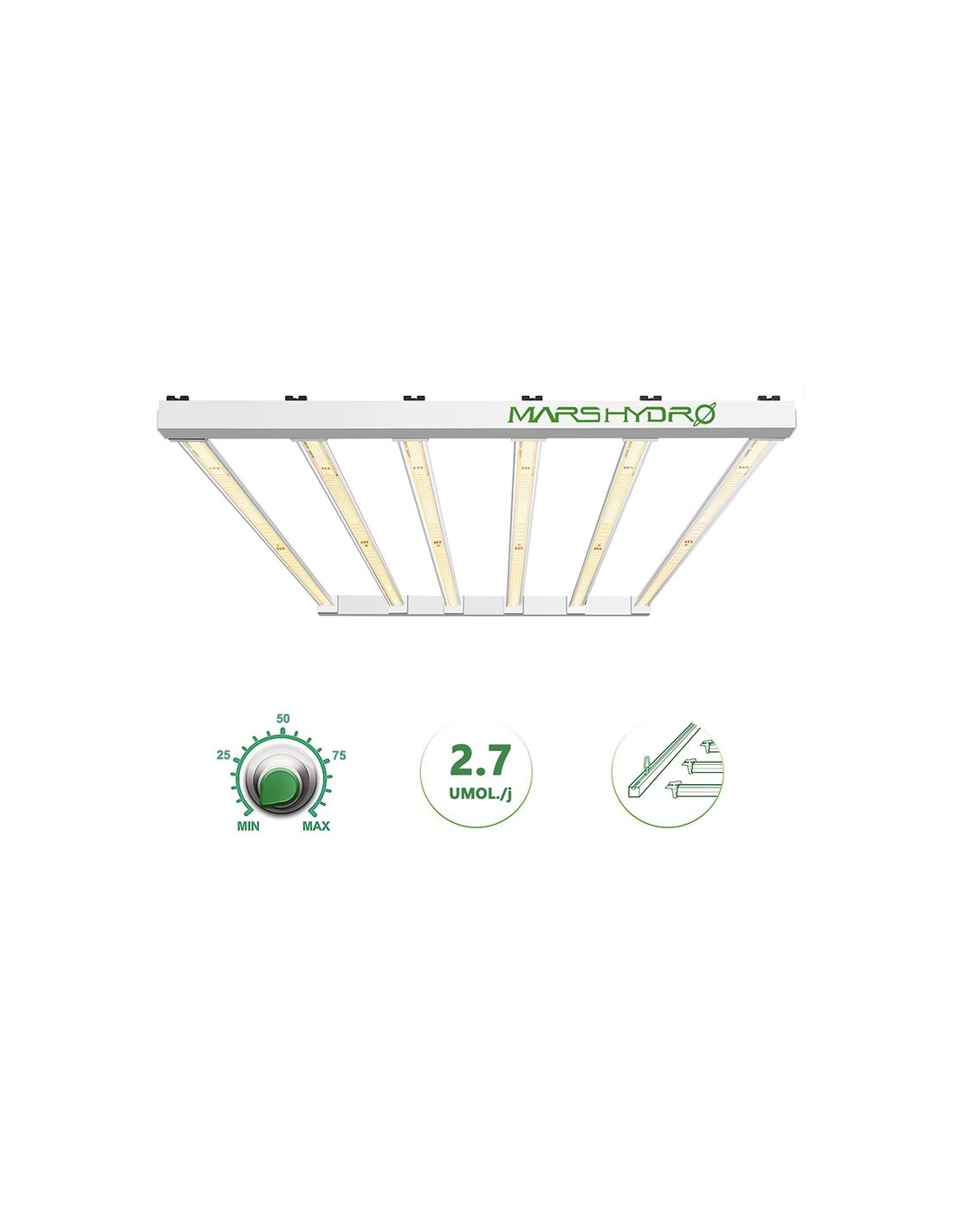 Ce panneau est dimmable de 25-50-75-100% et peut être réglé selon la phase de vie de vos plantes d'intérieur et vous permets des plantes fortes et saines.