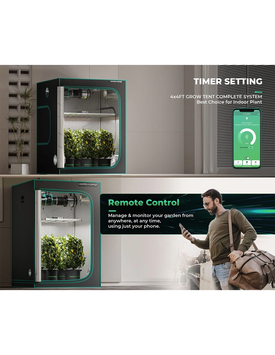 Contrairement aux concurrents, Mars Hydro vous offre la possibilité de gérer votre espace de culture gratuitement sans avoir à acheter un contrôleur mais uniquement en installant l'application gratuite Mars Hydro.