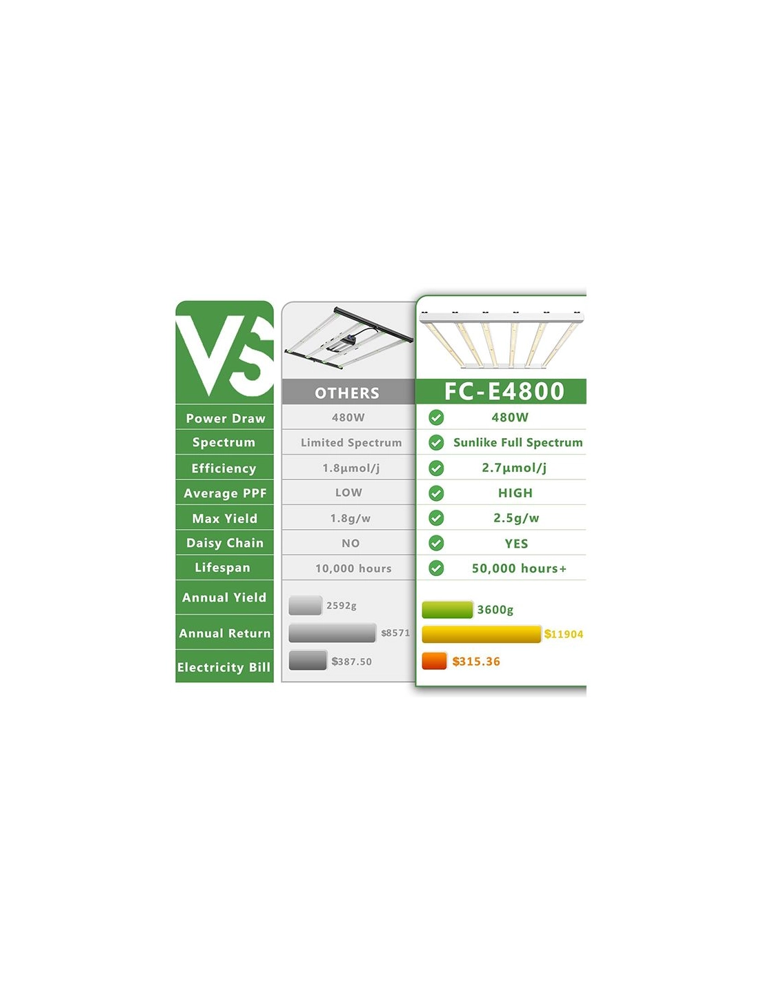 Le modèle Mars Hydro FC E-4800 est un système LED horticole très performant. Avec ces 480W de puissance, elle pourra parfaitement remplacer vos lampe MH et HPS avec 30% d'économie par rapport au lampe d'ancienne génération