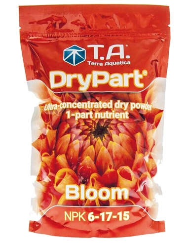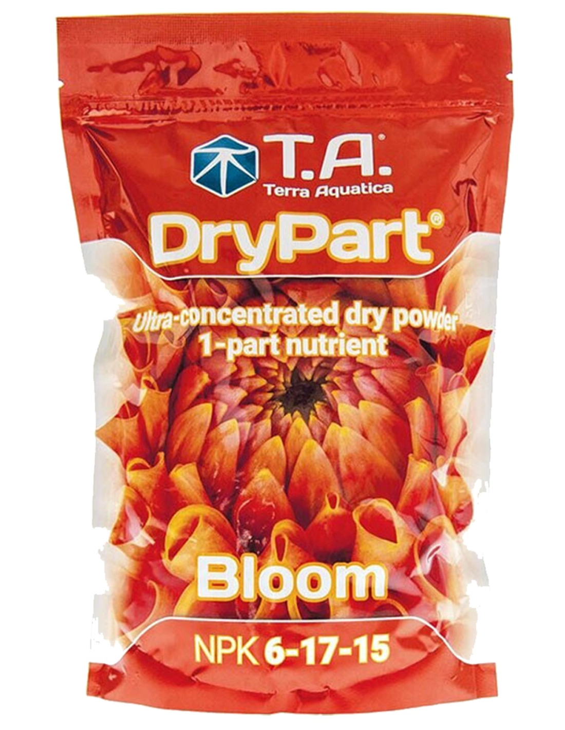 Solubles dans l’eau, DryPart® Grow et DryPart® Bloom s’utilisent séparément. Leurs formules se composent de nutriments primaires, secondaires et de micro-éléments premium, précisément dosés afin de garantir un arôme et des rendements optimaux, même en présence d’une eau très douce. Les deux formules contiennent des régulateurs qui stabilisent le pH de votre solution nutritive au niveau préalablement ajusté. Parce qu’il est en poudre, DryPart® se stocke et se transporte facilement, ce qui en fait l’engrais de prédilection des cultivateurs d’extérieur.