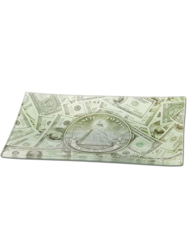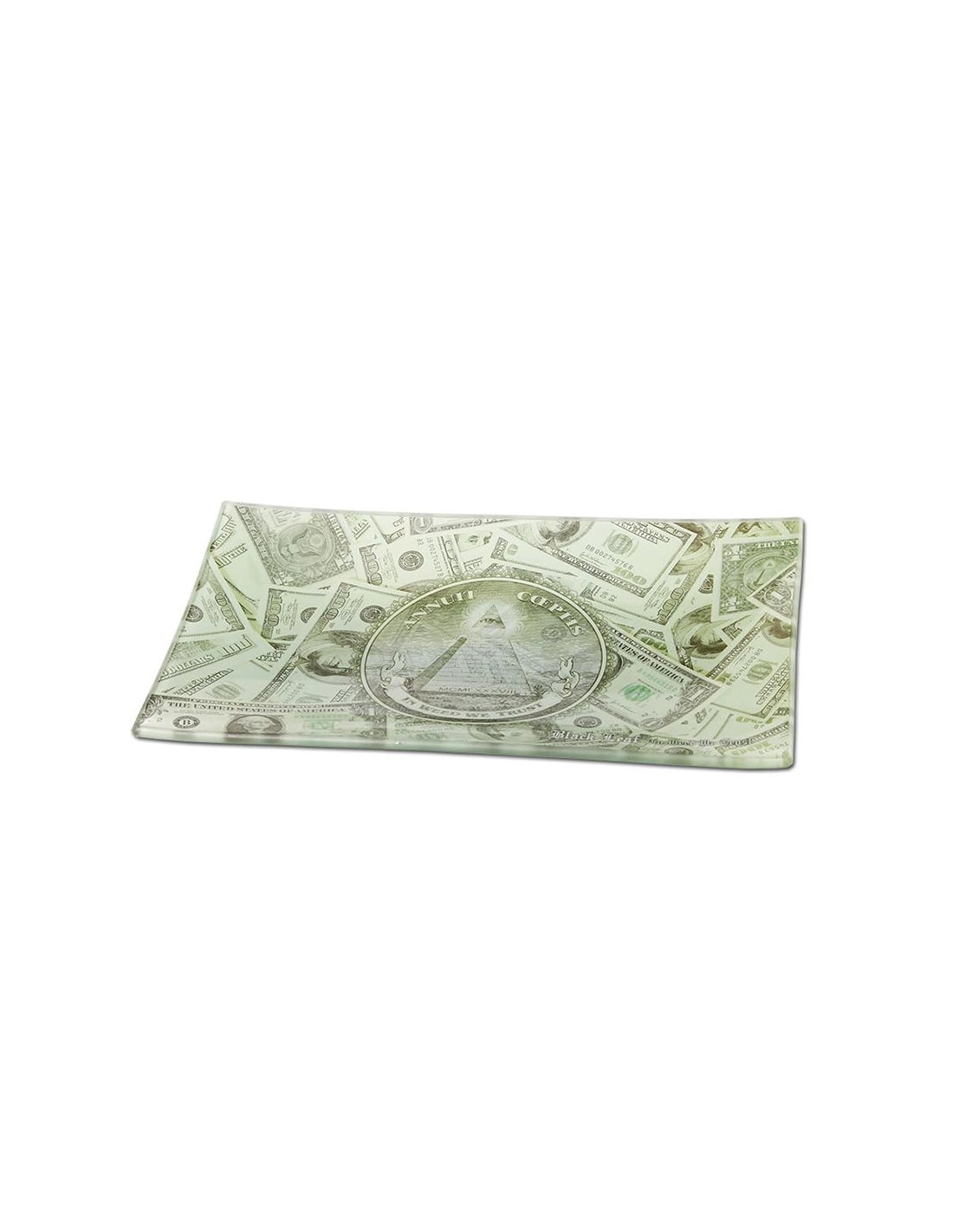 Plateau à mix en verre d'une dimensions de 25.5cm x 15.5cm avec l'image du dollars américain qui vous permettras de rouler vos joints sans en mettre partout.