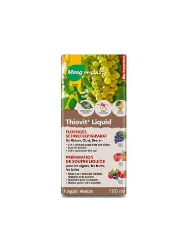 Fongicide et acaricide biologique concentré à diluer et pulvériser, contre les maladies fongiques et les acariens dans de nombreuses cultures.