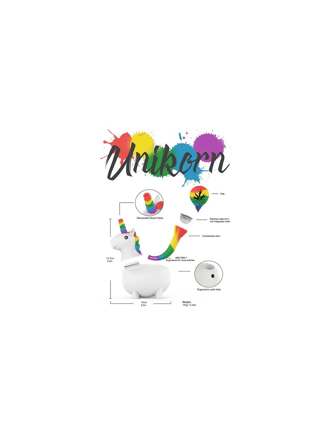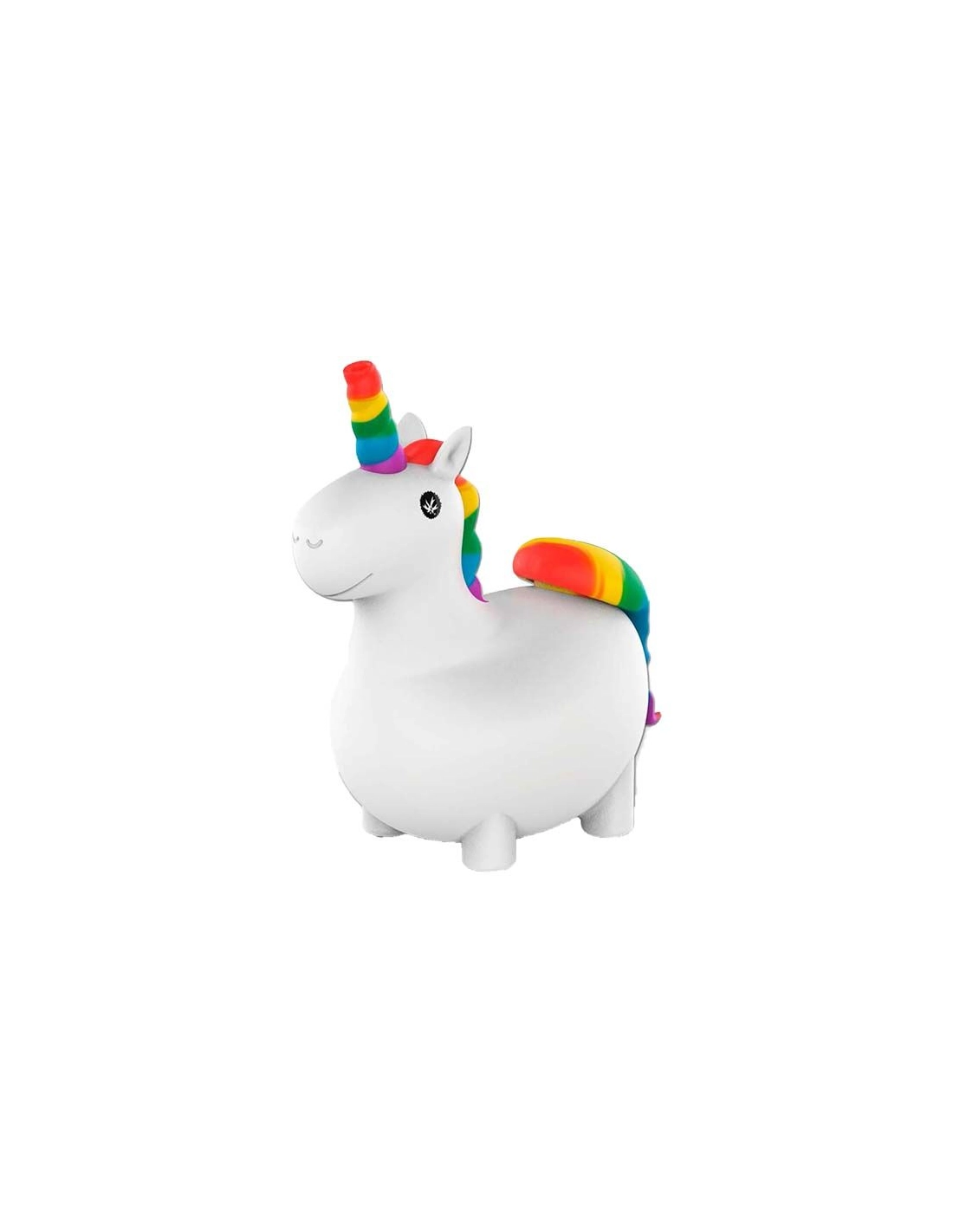 Bong en silicone sans bisphénol A original en forme de licorne ayant les dimensions 145 x 130 x 75mm. L'avantage de ce bong est qu'il est discret et peut tès bien être utilisé comme objet décoratif, il suffit de mettre votre herbe dans le foyer et de tirer par la corne de la licorne.