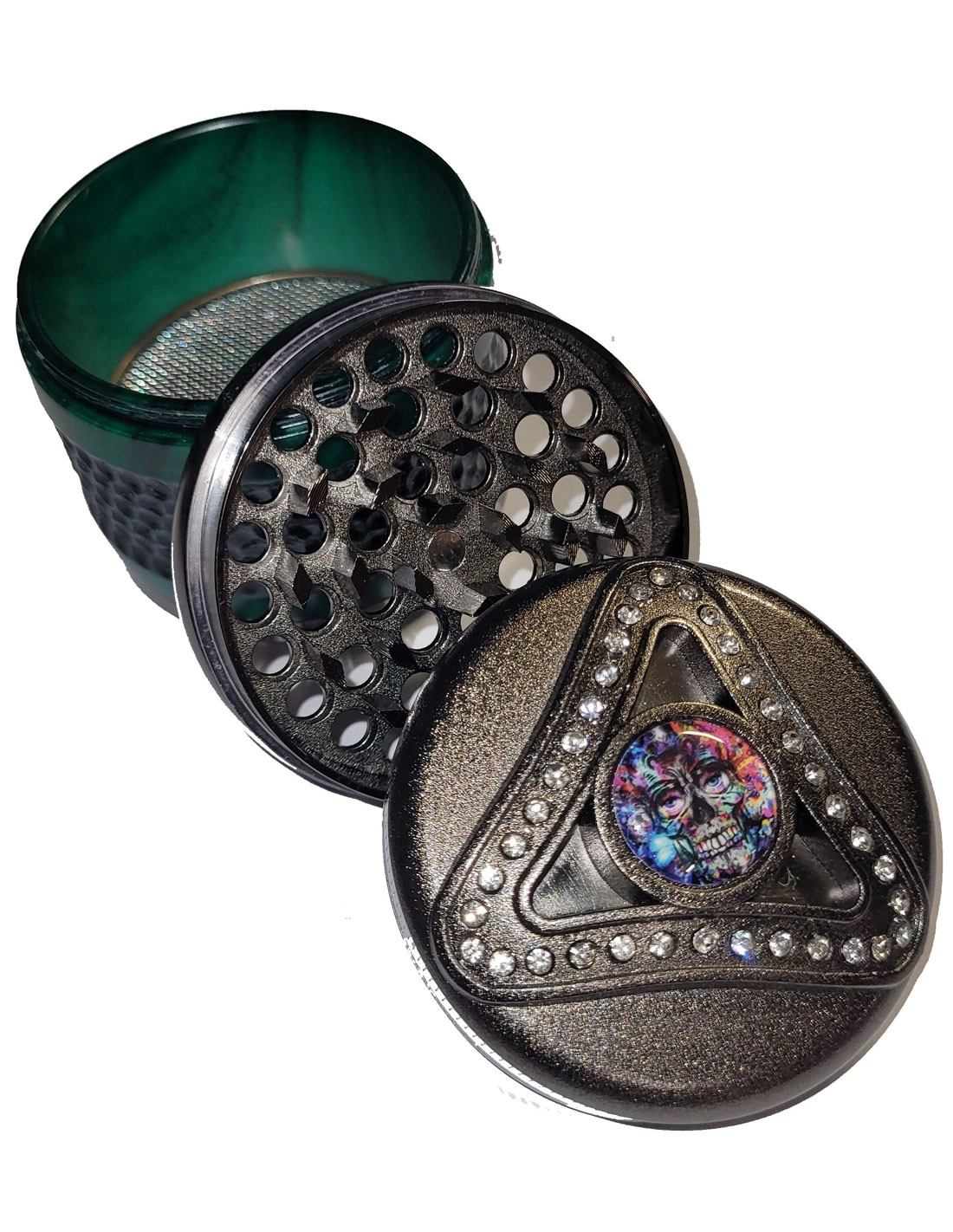 Grinder en métal doté de 4 parties dont une avec un tamis qui vous permets de récolter le pollen de votre CBD préférée.