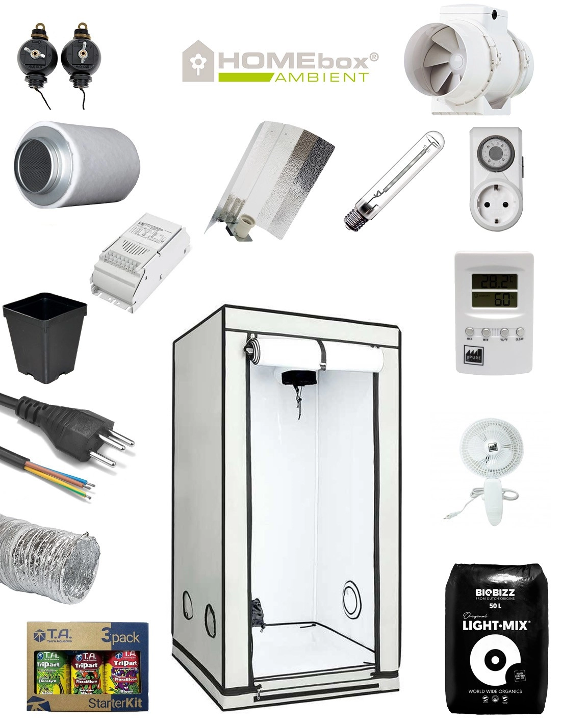 Für andere Optionen (Hydrokultur, Aerokultur, Kultur auf Kokossubstrat, andere Reflektoren, etc.) kontaktieren Sie uns bitte. Wir unterbreiten Ihnen dann ein persönliches Angebot. Aus Qualitätsgründen werden sämtliche Grow-Sets originalverpackt, in den jeweiligen Markenverpackungen von Dark Room/Street von Secret Jardin® und von Homebox®, geliefert. Diese Gewächshäuser haben sich seit vielen Jahren bewährt und wir freuen uns, Ihnen diese einwandfreie Qualität anbieten zu können.