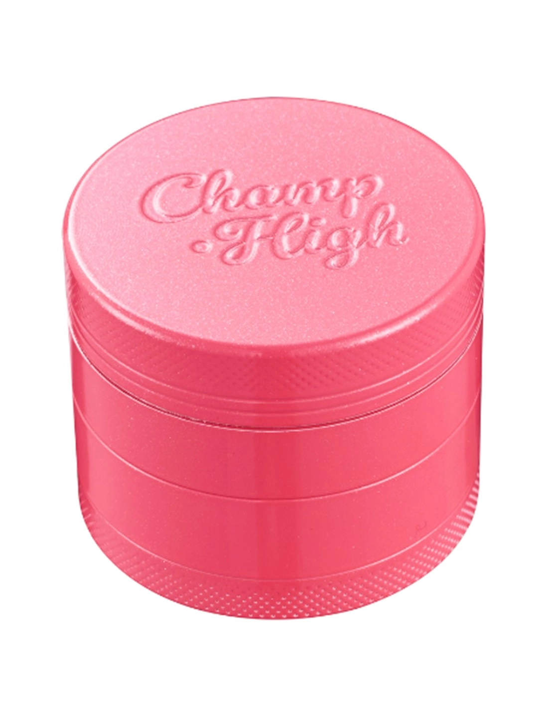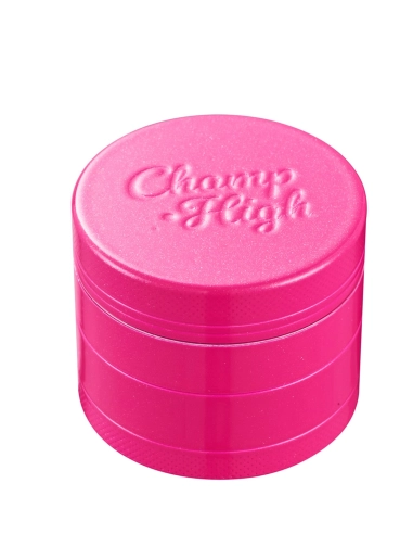 4-teiliger rosafarbener Grinder der Marke Champ High aus Aluminium mit einem Durchmesser und einer Höhe von 50 mm. Dieser Grinder ist mit diamantförmigen Zähnen ausgestattet, die einen feinen und perfekten Schnitt deiner Kräuter ermöglichen.