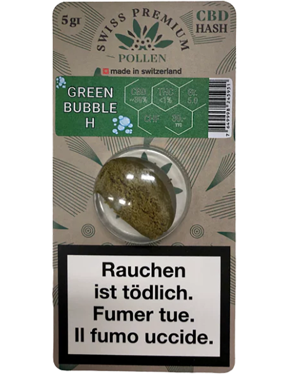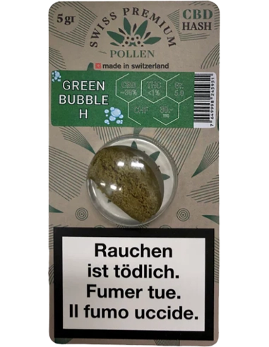 "Green Bubble Hash" ist ein hochwertiges CBD-Haschisch, das als Hommage an das traditionelle, durch Wasserextraktion gewonnene Haschisch entwickelt wurde.