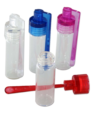 Dieses 5.9 ml-Fläschchen mit Löffel ist in verschiedenen Farben verfügbar. Mit seiner Höhe von 55 mm und einem Durchmesser von 15 mm eignet es sich wunderbar zur Aufbewahrung deines Schnupftabaks, der mit dem kleinen, mitgelieferten Löffelchen konsumiert werden kann.