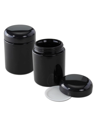 Glastiegel aus Violettglas mit Kunststoffschraubdeckel und Einlegedeckel für Kräuter. Das violette Glas schützt den Inhalt optimal vor schädlicher Lichteinwirkung, die den molekularen Zersetzungsprozess beschleunigt. So wird die Haltbarkeit des Inhalts verlängert.