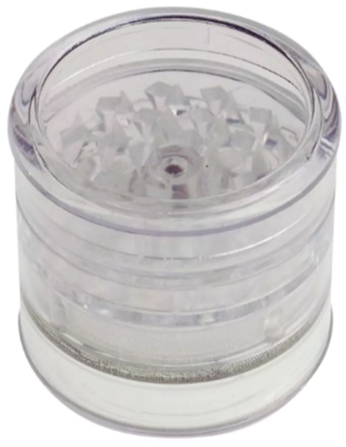 Grinder aus Acryl mit Pyramidenzähnen und Magnet,Sieb und Vorratsfach.
