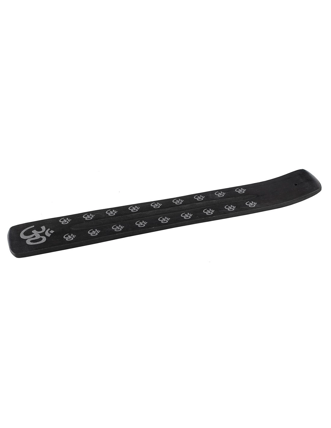 Räucherstäbchenhalter OM aus stabilem und nachhaltigem Mangoholz, welches bunt gefärbt wurde. Jeder Halter hat eine Öffnung für ein Räucherstäbchen, in der das Räucherstäbchen leicht schräg steht, damit die Asche in die Rinne fällt.