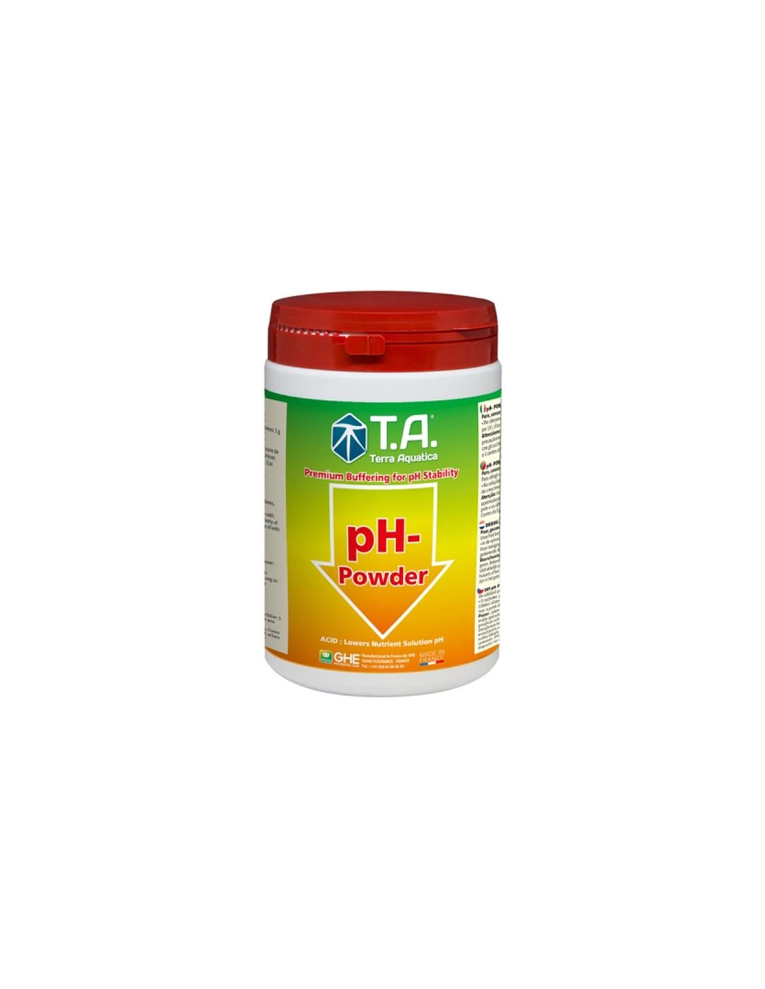 Das einzige als Pulver erhältliche pH-Korrekturmittel des Marktes Branchenweit einzigartig : pH- Pulver, im Lieferzustand chemisch inaktiv, entfaltet seine Säurewirkung erst nach dem Verrühren mit Wasser. Die pH-Wert-Korrektur ist eine der Hauptaufgaben des Indoor Gärtners. Bei richtig eingestelltem pH sind Mineralstoffe pflanzenverfügbar und Chelate stabil. Die Versendung säurehaltiger pH-Senker auf dem Postweg ist jedoch riskant und deshalb in manchen Ländern verboten. Mit seinem versand- und transportfreundlichen pH- Pulver hat Terra Aquatica eine patente Lösung für dieses Problem entwickelt.