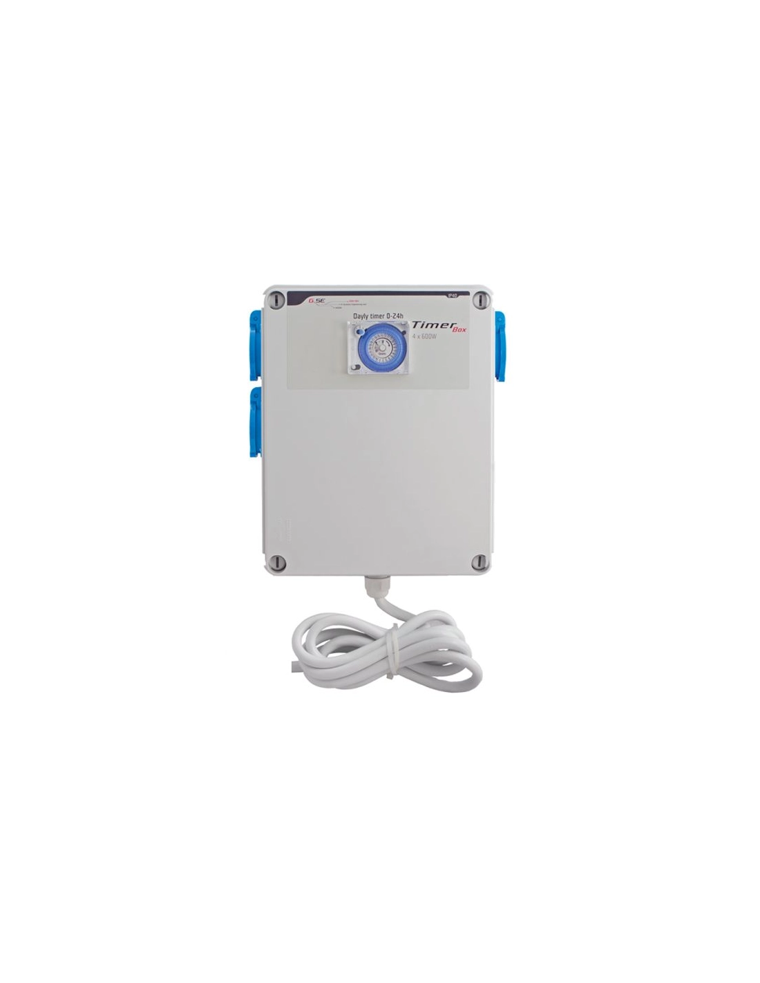 Die Timer Box 2 von GSE 3x600W verfügt über einen Timer der Marke Grässling, mit dem Sie bis zu drei 600W-Lampen schalten können. Der Timer erlaubt 30-minütige Intervalle pro 24h.