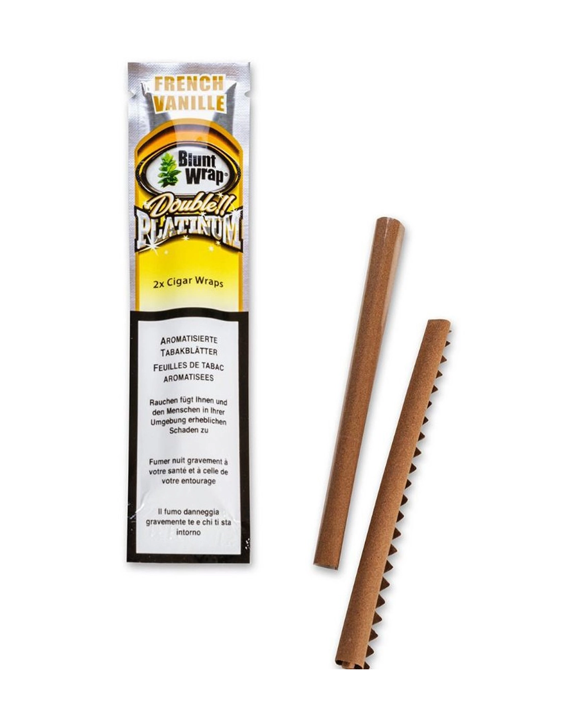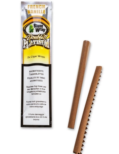Die Blunt Wraps von Double Platinum sind aromatisierte Tabak-Wraps die es in vielen verschiedenen Geschmacksrichtungen gibt. Der Tabak stammt aus der traditionsreichen Dominikanischen Rpublik. Die Wraps kommen immer im luftdicht verschlossenen 2er Pack. Um Knicke und Brüche zu vermeiden, sind die Wraps um einen Strohhalm gewickelt, welcher auch im Nachhinein als Stopf- und Füllhilfe nützlich sein kann. Durch die bestehende Restfeuchtigkeit im Produkt lassen sich die Blunt-Wraps beim Drehen gut handlen.