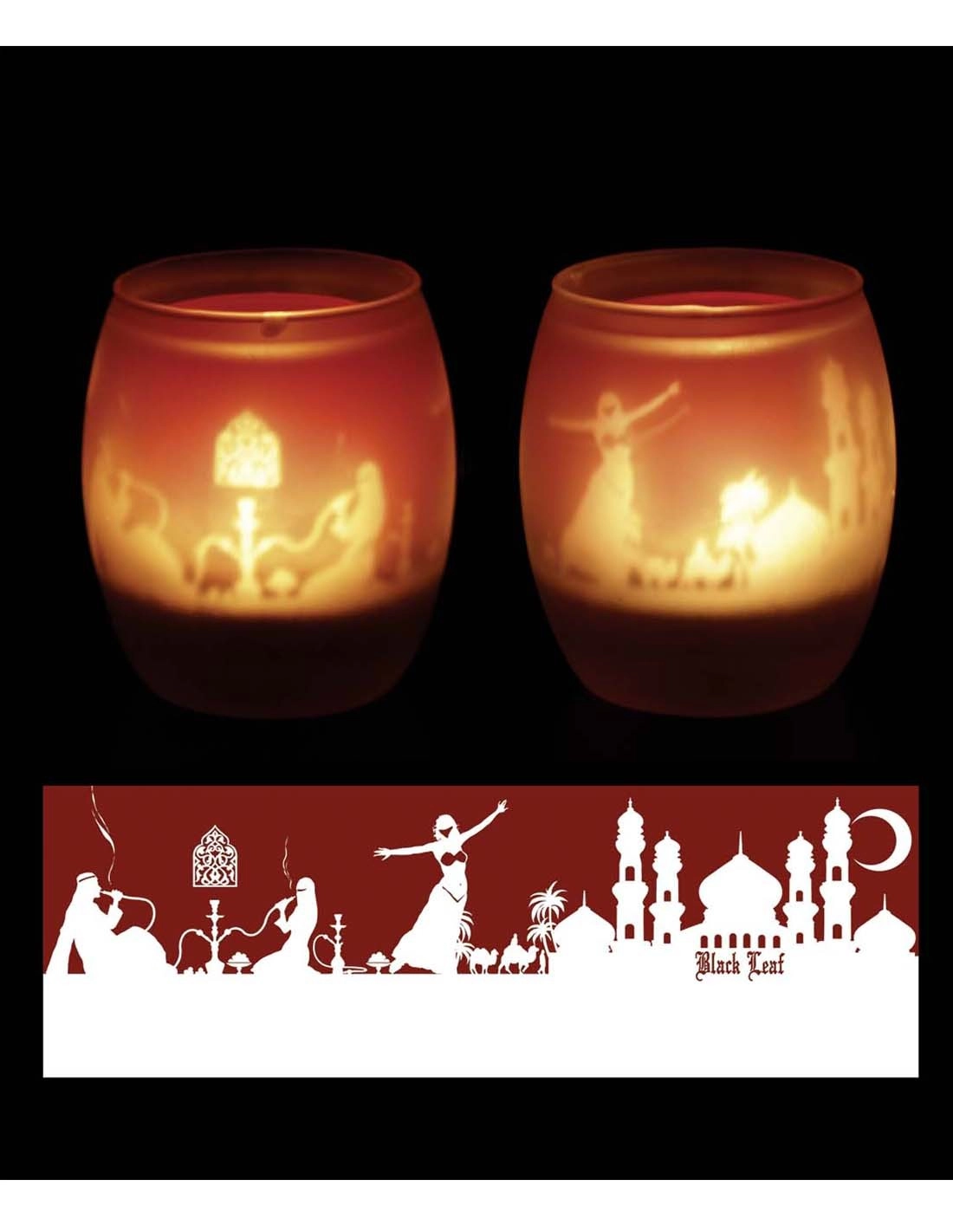 Kerzenhalter/Windlicht der Marke Black Leaf mit orientalischem Muster. Höhe: 9cm, Durchmesser: 60mm.