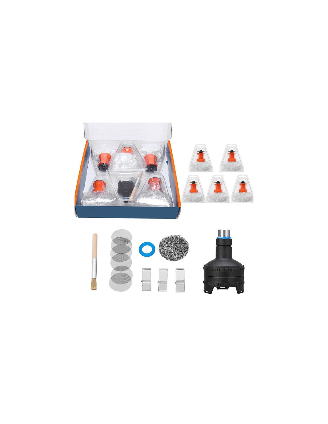 Starterset für Volcano Easy Valve mit 4 Ersatzballons und einem Ventil mit auswechselbarem Ballon sowie der Füllkammer mit Deckel. In diesem Set finden Sie auch Gitter, ein Pad für Flüssigkeiten und eine Reinigungsbürste.