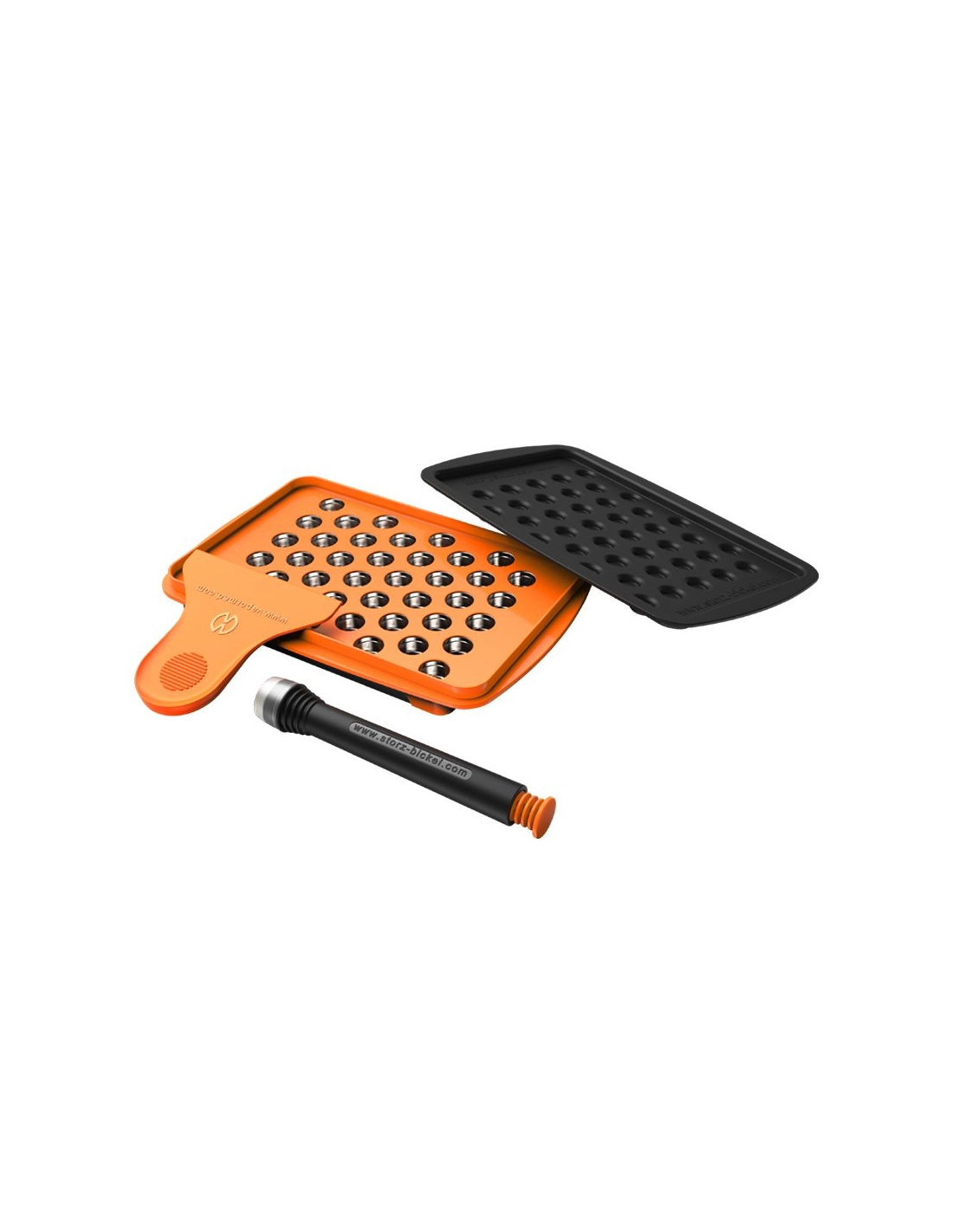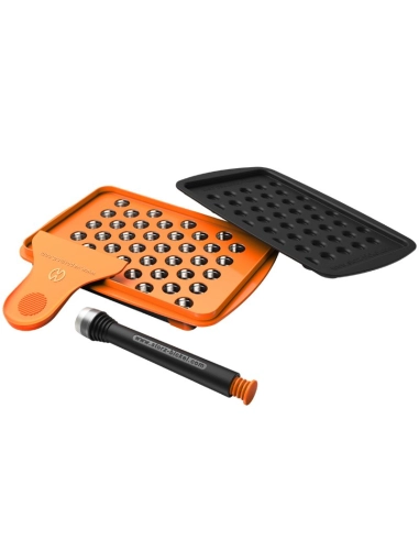 Das Füllset für 40 Dosierkapseln wurde entwickelt, um eine größere Menge Dosierkapseln gleichzeitig zu befüllen. Der beigelegte Stößel erleichtert das Schließen der Kapseln zusätzlich.