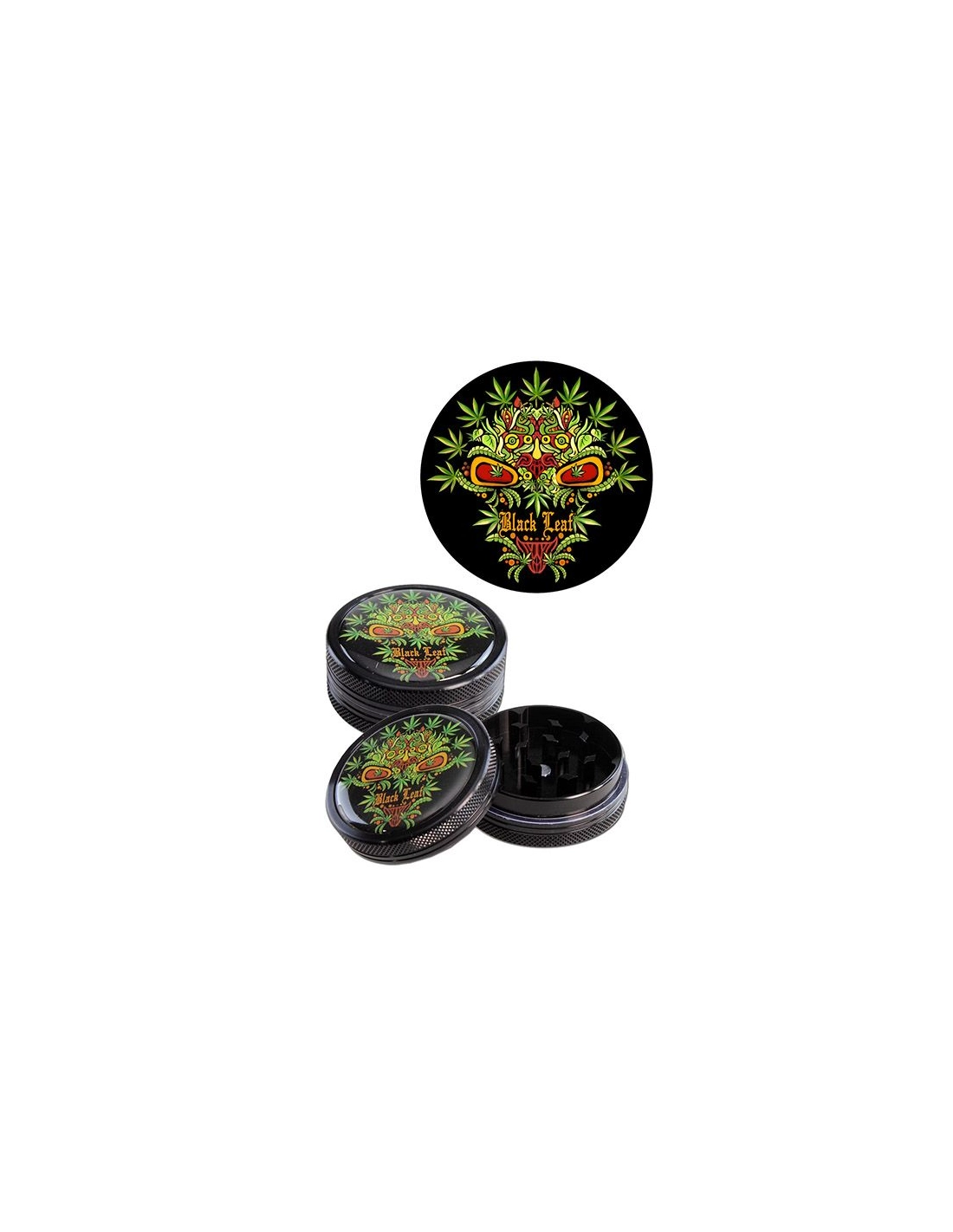 Aluminium-Grinder der Marke Black Leaf, Leaf Skull. Durchmesser: 50 mm Höhe: 23 mm