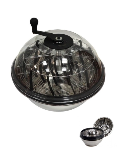 Manuelle Erntemaschine, die auf dem Prinzip einer Salatschleuder beruht. Sie enthält Klingen zum Zerkleinern der Blätter, für ein hochwertiges Endprodukt.