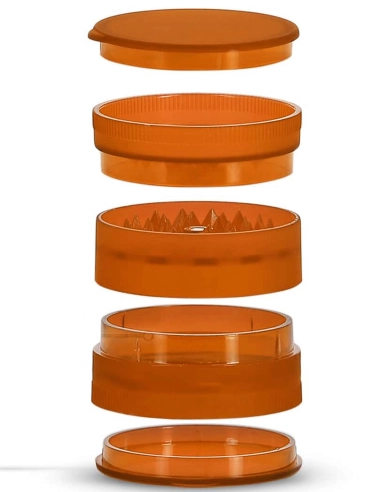 4-teiliger Grinder aus Kunststoff mit Sieb zur Harzgewinnung.