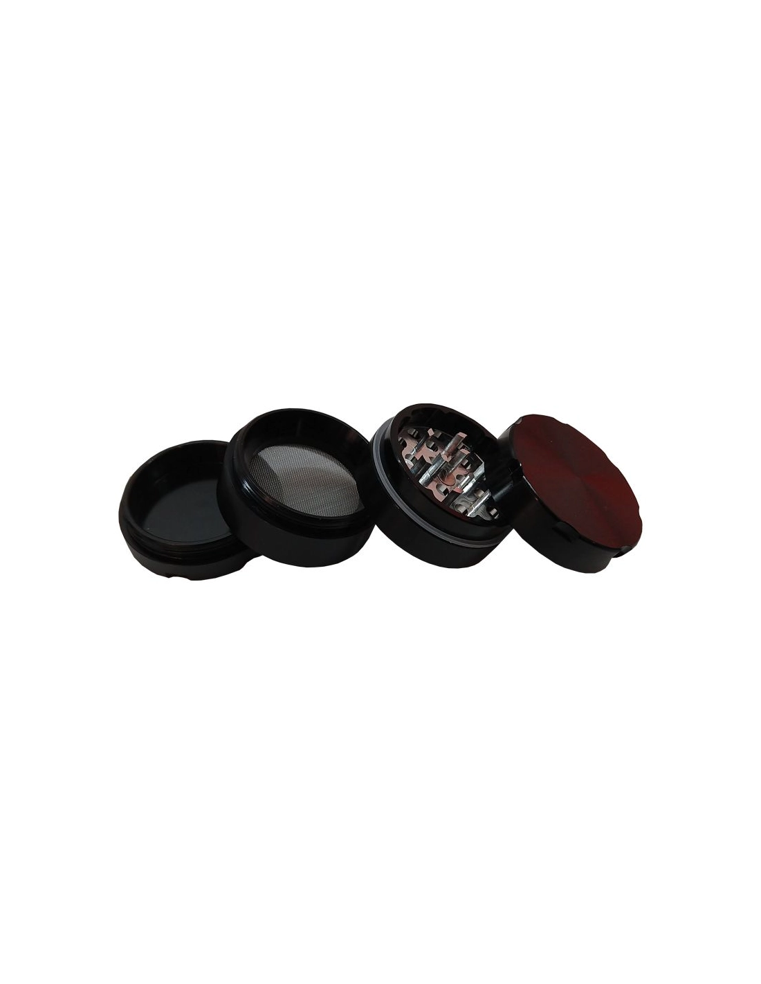 4-teiliger Grinder aus eloxiertem Aluminium mit Pollenfänger. Seine rautenförmigen Zähne sorgen für einen perfekten Schnitt, sein Teflon-Gelenk für einwandfreies Gleiten.
